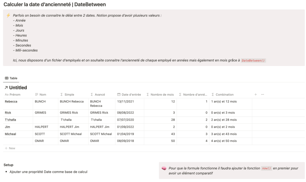 J'ai rassemblé 15 formules notion qui te permettront de faire des calculs complexes. Je pars du principe que je veux construire un fichier de gestion des employés avec certaines informations.