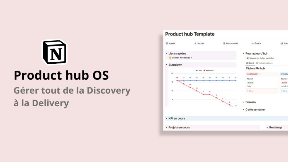 Gagnes un maximum de temps et structures ton travail de la discovery à la delivery grâce au template Notion Product Hub.